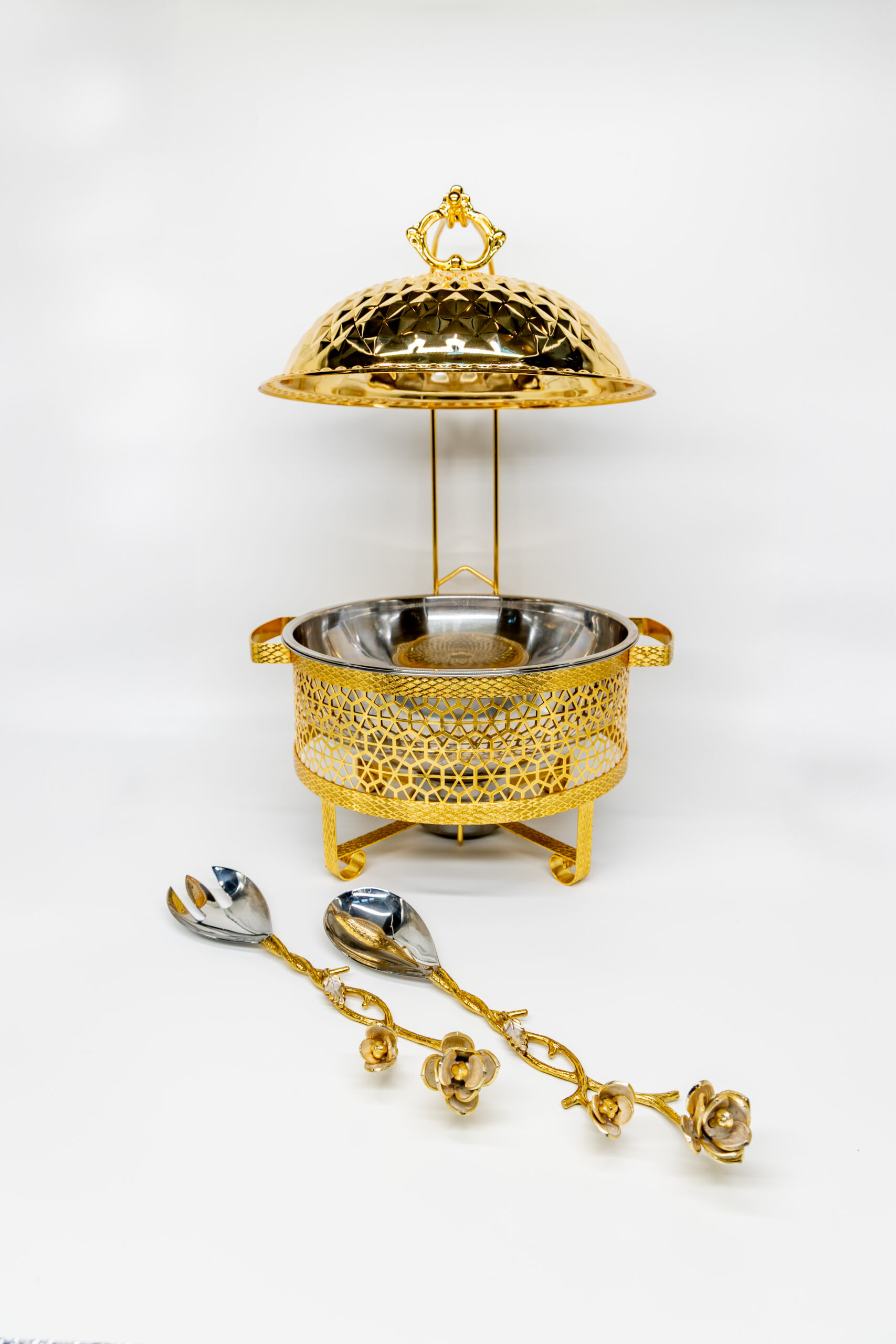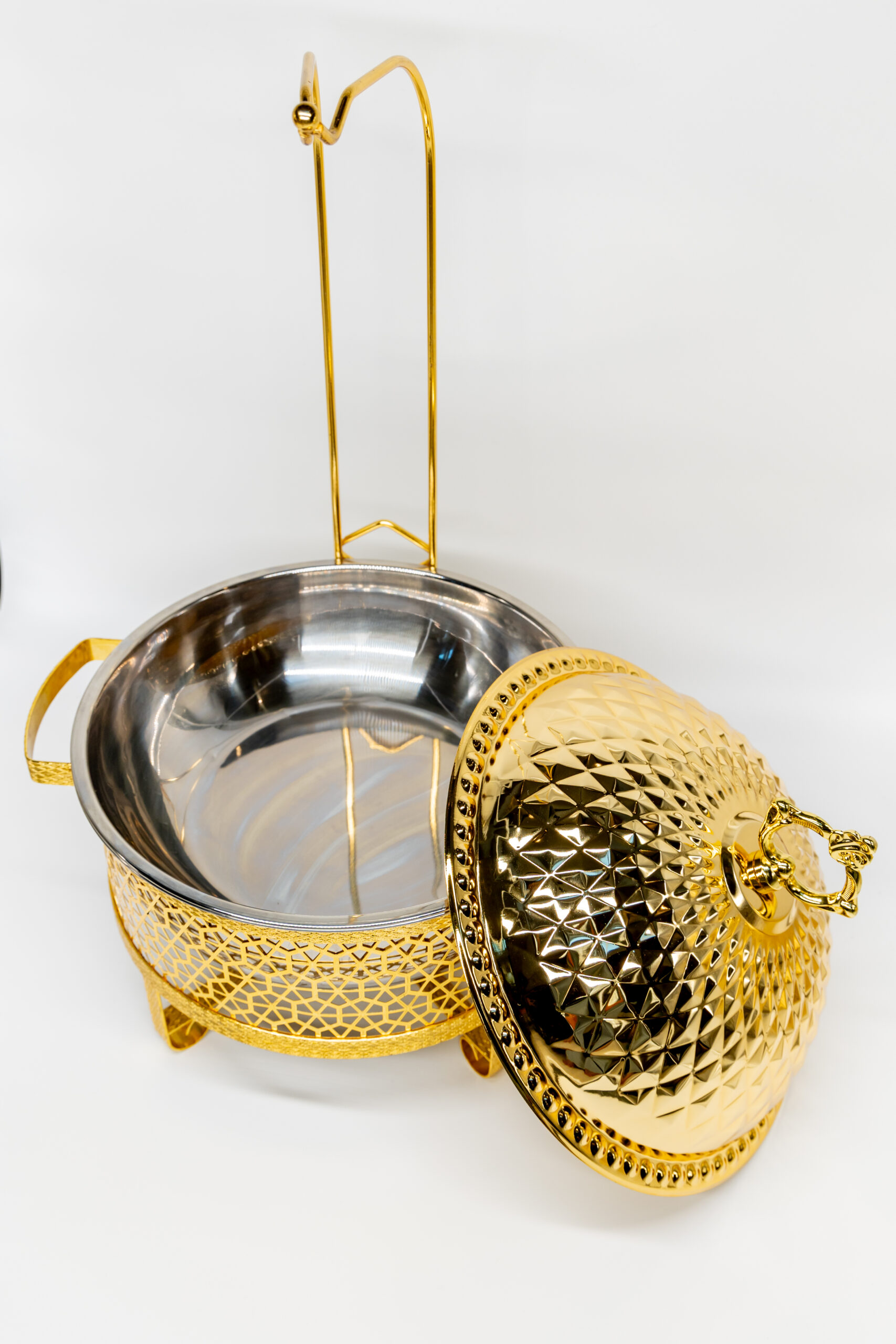 Indulge in Unparalleled Elegance: Elevate your gatherings with our exquisite gold chaffing dishes. Perfect for both intimate parties and grand celebrations, these 4.5 quarts masterpieces add a touch of opulence to every occasion. Make a statement and transform your events into a symphony of luxury.